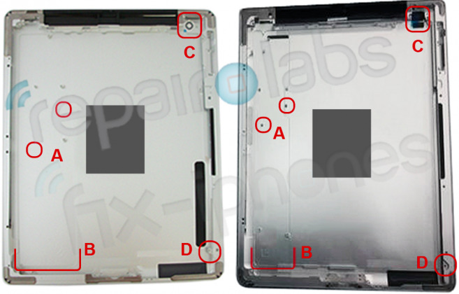 A component purported to be the back panel of Apple's future iPad 3 has surfaced and when compared with the back panel of an iPad 2, several differences are apparent. The comparison was posted by RepairLabs, which points out that the new panel design suggests a larger battery, a new LCD, and a tweaked camera.