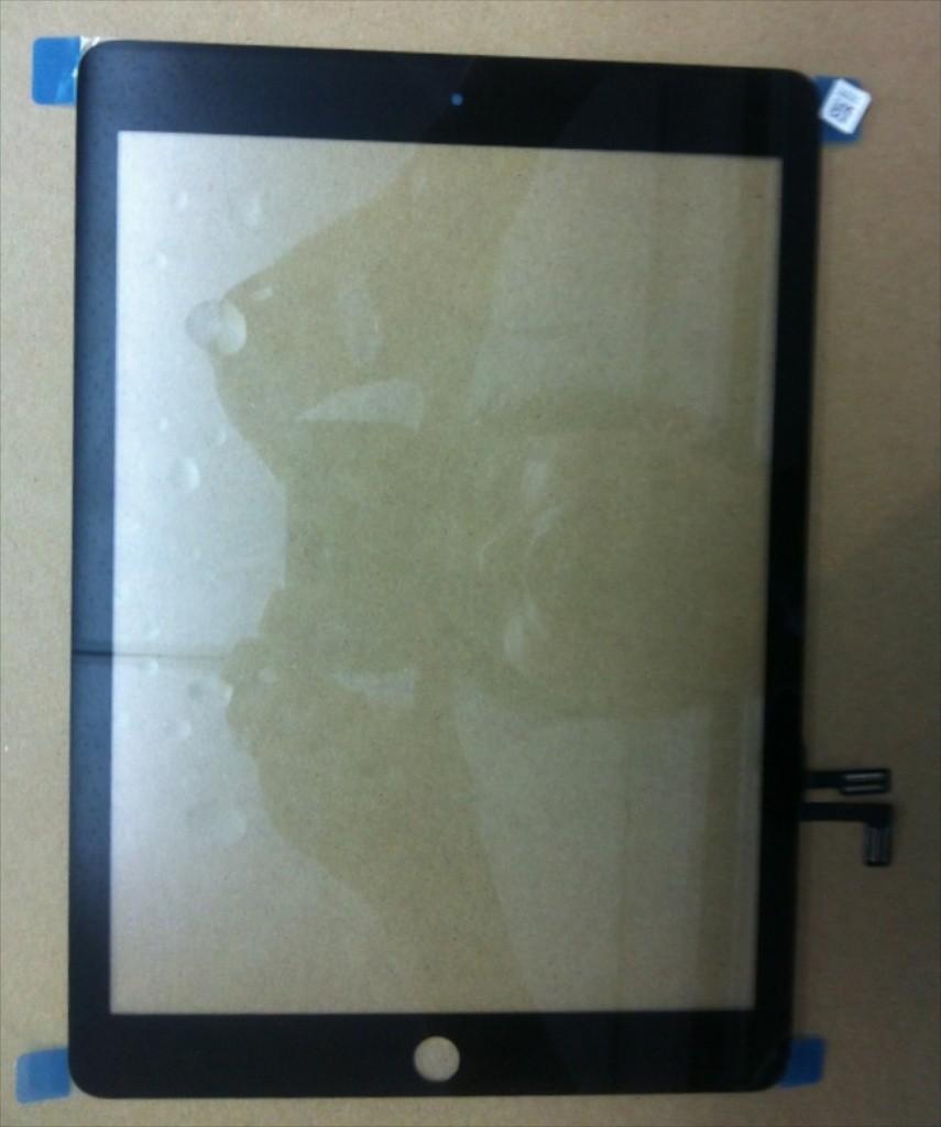 This new iPad has been suggested – more than a few times – to be working with a slimmer body and design cues straight out of the iPad mini construction manual. You'll see here that the iPad's 5th generation will once again stick with a similarly-sized set of bezels, but will be curving its corners in to match the look and feel of the iPad mini. You'll also notice – though it wont likely affect the final user experience all that much – that there are now 2 connector cords coming out the side of this panel rather than just one.