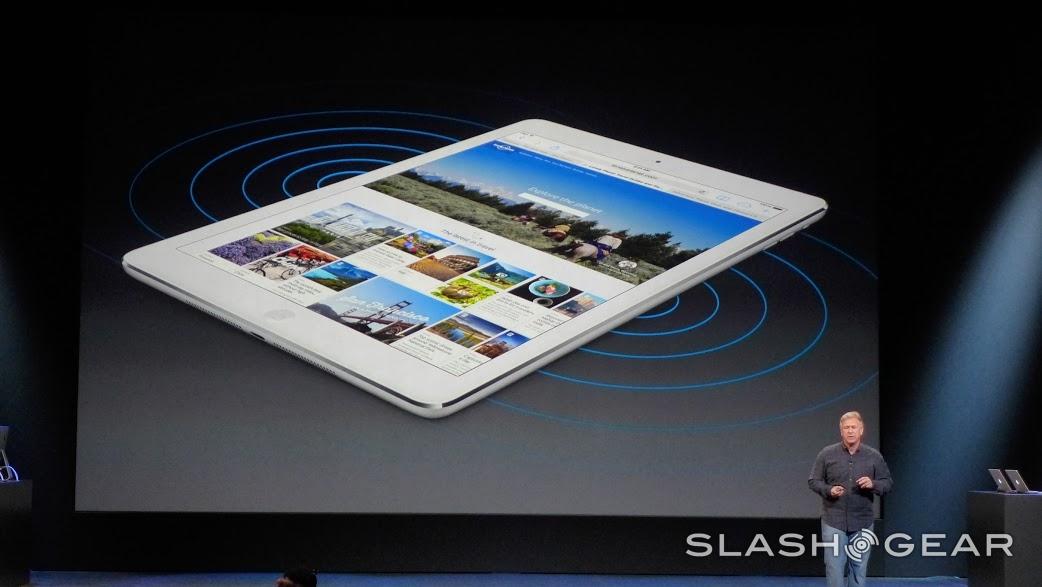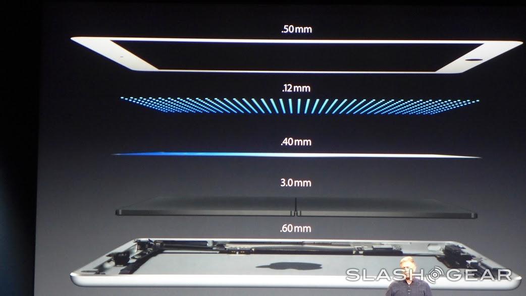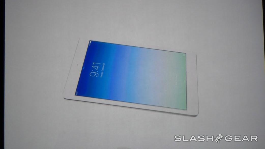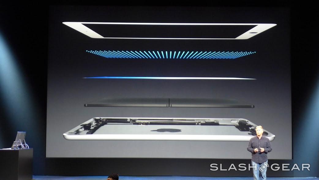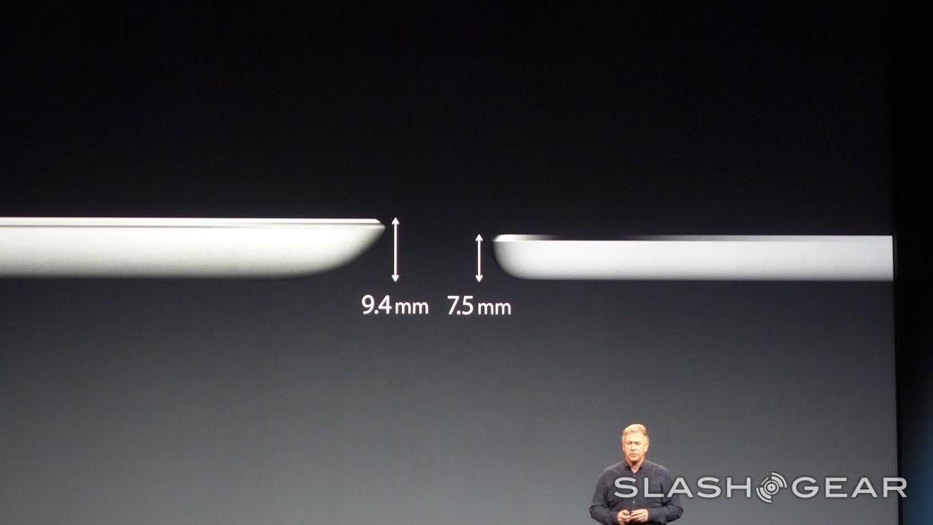 This machine will be working with a body that's 7.5mm thin, 20 percent thinner than the previous model. It'll also be working with a bezel that – to be exact – is 43 percent thinner than the previous model. The whole unit weighs in at one pound. This machine also works with another A7 chip, the same (or slightly modified from) the one in the iPhone 5s.
