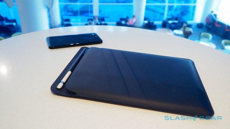 What it still won't do is cover the back of your iPad Pro. For that, you either need a third-party keyboard case, or Apple's new leather sleeve. You can just about squeeze in the iPad Pro 10.5 with the Smart Keyboard in place, while there's a useful slot for the Apple Pencil too. It's not cheap, mind: you're looking at another $129.