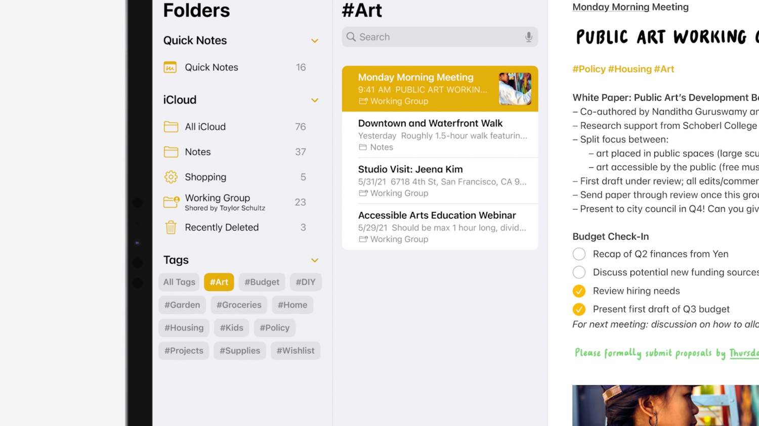 There's a new Quick Note app that appears in the bottom right of your screen when swiped up with an Apple Pencil. Quick Note will also appear in Mac OS – without the stylus part, of course.