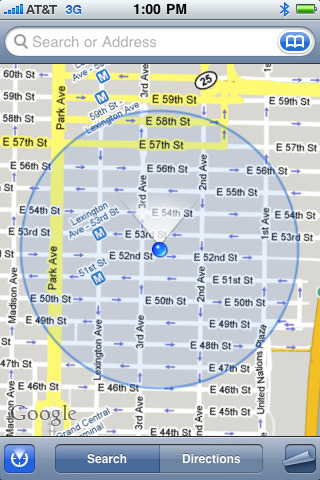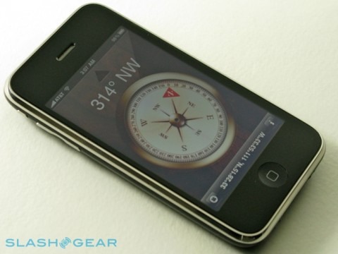Making a big deal out of a digital compass may seem a little strange, but we've already seen how beneficial one can be on HTC's Android handsets. Out of the box, the iPhone 3GS offers either standalone access to the compass, or integrates it with Google Maps. Tapping the "Find Me" button once loads up GPS, as before, but tapping it again turns on the compass; the map automatically rotates to show which direction you're facing. It works smoothly and without any stuttering, but we were disappointed to find that it doesn't pan around Street View as on Android phones. Nonetheless, it's a decent start, and once third-party apps begin to tie into the compass we'll likely see even more use of direction data.