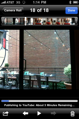 Still, once you've done whatever trimming you want, it's a simple matter to upload that file to YouTube or MobileMe, with the 3GS automatically compressing it to suit. You can also send it as an email attachment or – if your carrier supports it – MMS. Strangely, there's no Flickr upload option for still photos.