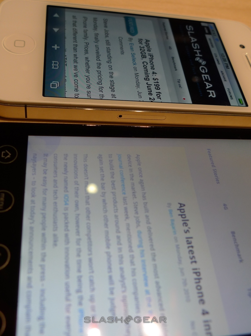 Slimmer, brighter, more powerful and apparently the product of 18 months development: the Apple iPhone 4 certainly is something. The WWDC 2010 opening keynote is over, and we've just been back to check out the new Apple smartphone. Set to debut on June 24th – and up for preorder from June 15th – the Jobs hyperbole and press shots don't do the iPhone 4 justice in your hand. Whether you're an Apple fan or not, you have to give them credit for creating a very slick device.More first impressions and hands-on gallery and videos after the cut