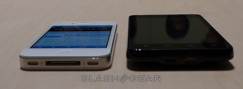 At just only 9.3mm thick, we already know it's 24-percent thinner than the iPhone 3GS. Still, the squared off edges means it doesn't feel quite as slender as you might imagine. Happily the incredible IPS screen – using Apple's new Retina Display 960 x 640 technology – more than makes up for it. Icons are smooth, crisp and clean, and text is incredibly precise. We browsed through a few webpages and were blown away by how amazingly readable they were even at zoomed-out levels. All of a sudden the limitation is your eyesight not the resolution of the phone.