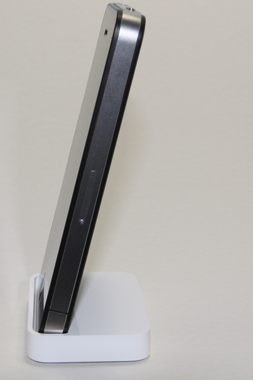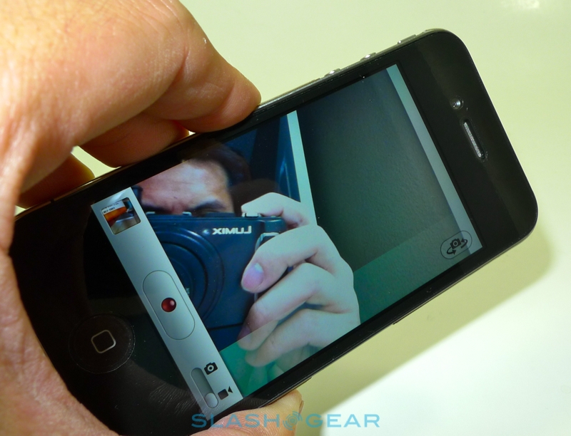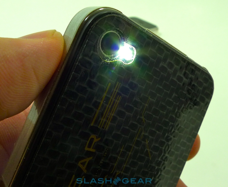 Hardware controls are limited to a power/sleep button on the top edge, a ringer switch on the top left hand side, volume up/down buttons just beneath it and the usual home key under the display. On the bottom edge is the dock connector, flanked by two speaker grills, while a 3.5mm headphone jack sits up on the top. The front-facing camera is just visible alongside the speaker grill, while on the back is the main camera and the new LED flash above the traditional shiny Apple logo.