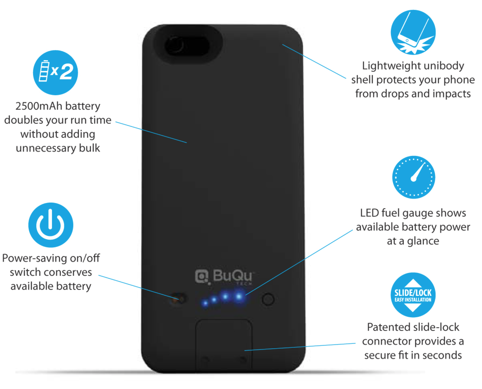 The team at BuQu Tech will be pushing one of the first battery cases ready for the iPhone 6. With the PowerArmour, BuQu will be keeping things super simple. All black, a Lightning connector at the bottom, room for your camera at the back, and a couple of holes for your down-facing speakers to reverberate outward.