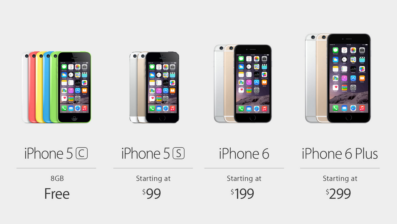 The iPhone 6 Plus will be released after the iPhone 6, starting in at $299 with a 2-year contract. The iPhone 5s will replace the iPhone 5c, while the iPhone 5c will replace the iPhone 5.