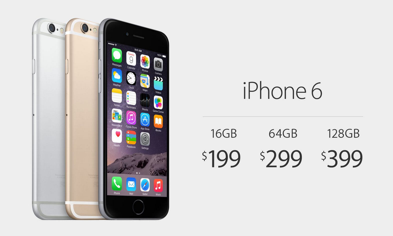 The iPhone 6 and iPhone 6 Plus have been priced this morning with the iPhone 6 – the smaller – replacing the iPhone 5s. The iPhone 6 will be available for $199 for a 16GB edition with a 2-year contract, $299 for a 64GB edition, and $399 for a 128GB edition. Remember that these are not off-contract prices – we'll get those later.