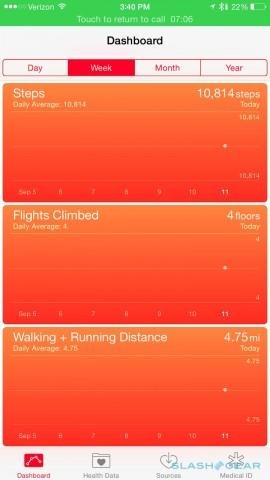 It's early days for Health, certainly. In fact, I had an early glitch, where it wouldn't register any content after I restored the iPhone 6 from an iPhone 5s backup; installing a new pedometer app fixed that, and the data came flooding through in real-time. Still, we're already seeing early signs of developers and platforms looking to get involved.