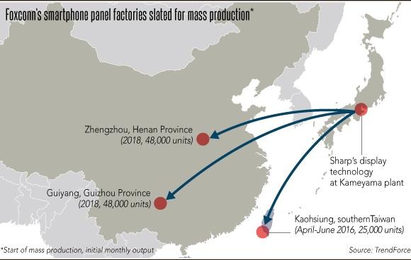 TrendForce has created the map you see above to show where Foxconn has been tipped to increase factory boosts to create new smartphone display panels – it is not yet clear whether Foxconn will somehow take on production of OLED panels too, or if they're simply taking on LCD production duties for Apple from Sharp.