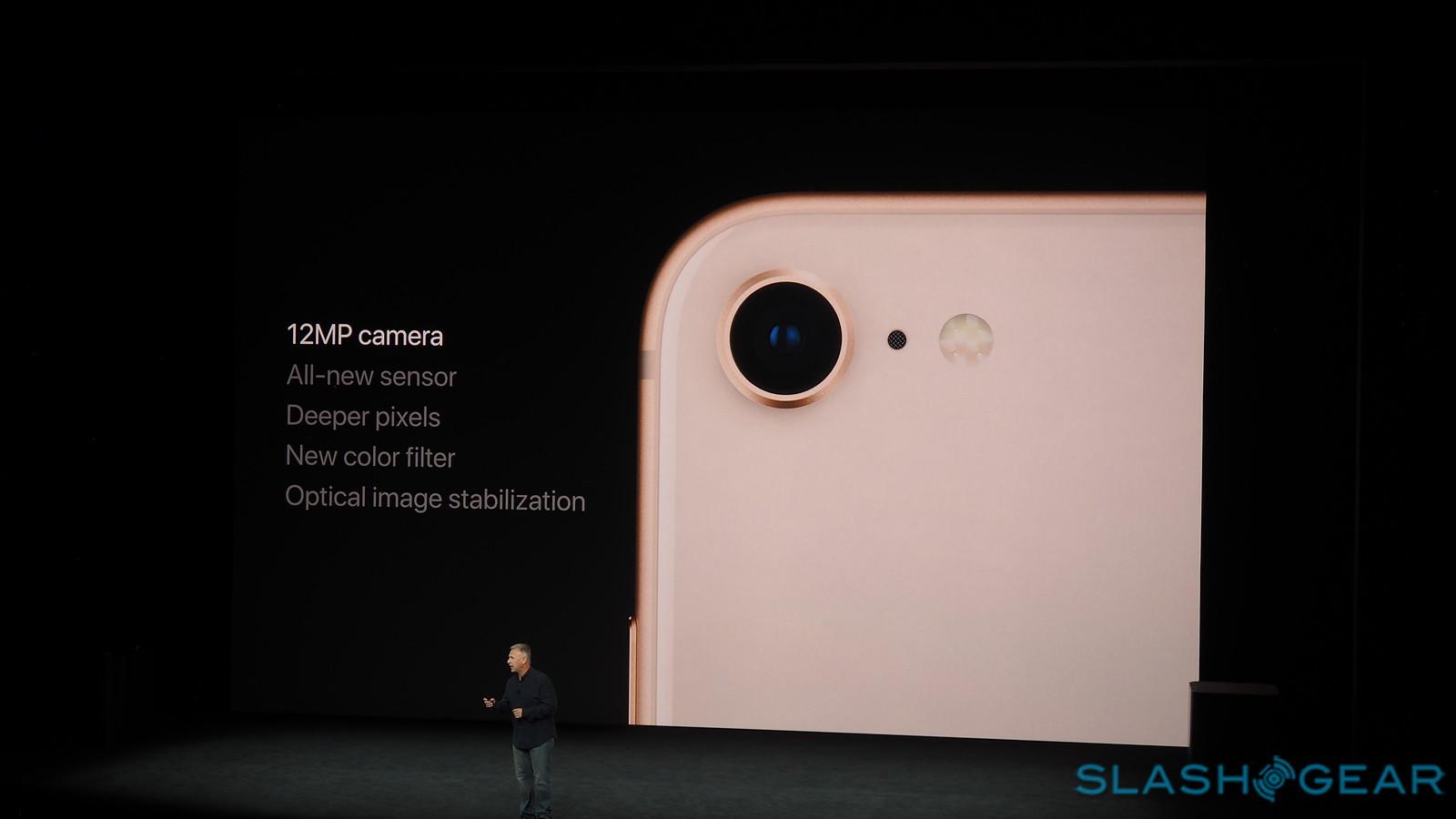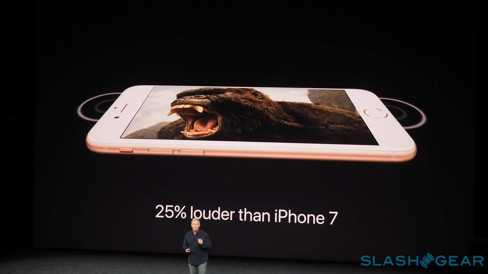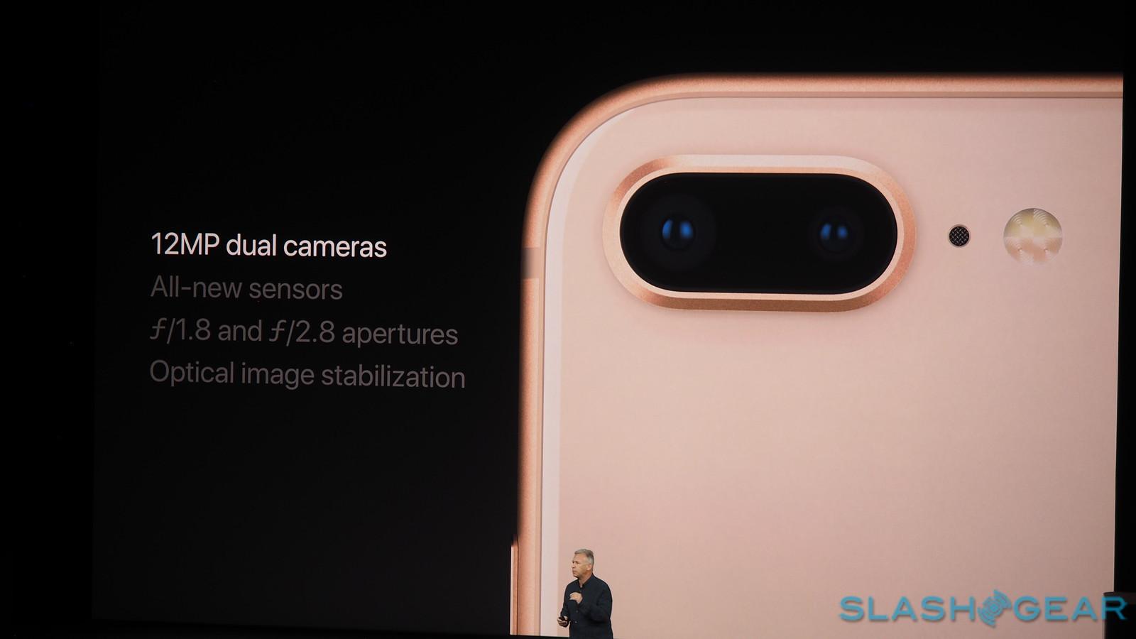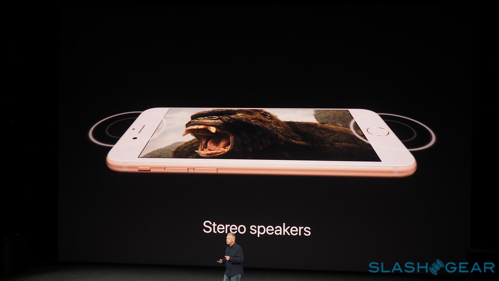 This new set of phones has stereo speakers – one out the ear-hole and one out the bottom. Both devices also have the "most powerful chip ever in a smartphone" with the A11 "bionic" chip. The iPhone 8 Plus comes with 12MP dual cameras and all-new sensors, with f/1.8 and f/2.8 apertures and optical image stabilization.