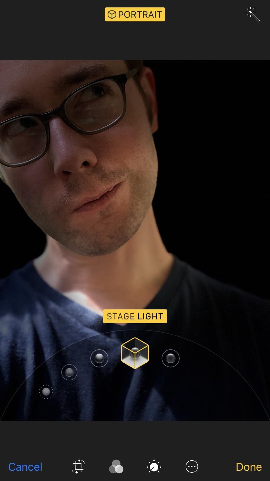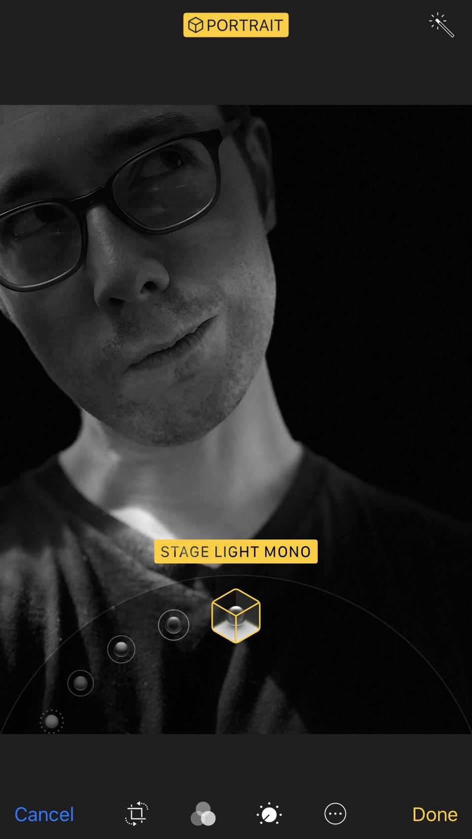 By default, you get the usual Portrait mode – now named "Natural Light" – though tweaked to make for more pleasing faux-bokeh in the background and a smoother line around the subject. However you can switch to the new modes and see the impact in real-time. "Studio Light" and "Contour Light" bring out facial details or emphasize facial structure, respectively, while "Stage Light" and "Stage Light Mono" leave the background in darkness to mimic the impact of being in a spotlight on-stage.
