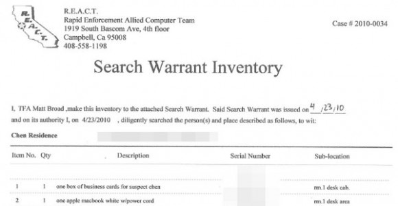 Jason Chen's home was raided before he returned home from dinner. REACT was working with the authority of a search warrant, and it all happened during the evening hours last Friday. The task force seized several pieces of computer hardware, along with several other items, all of which are wrapped up in an investigation regarding the acquired iPhone HD/4G.