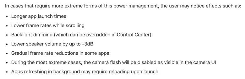 "With the update, iOS dynamically manages the maximum performance of some system components when needed to prevent a shutdown," Apple explains, though goes on to admit that while that was intended to be invisible to the end-user, it might not have always been the case. "While these changes may go unnoticed, in some cases users may experience longer launch times for apps and other reductions in performance."