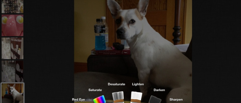 For editing, this application allows you both simple and pre-packaged changes for your photos as well as more "full control" abilities where you are the master of the pixels you have before you. Apple designed effects make for one-shot over-all changes to your photos while fingertip brushes have you taking the parts of your photos you want to change and changing them at will. While this application isn't the end-all be-all of photo editing apps, it's certainly a powerful beast when it comes to working with the still photo media you're capturing with your iPhones and iPads on a day to day basis.