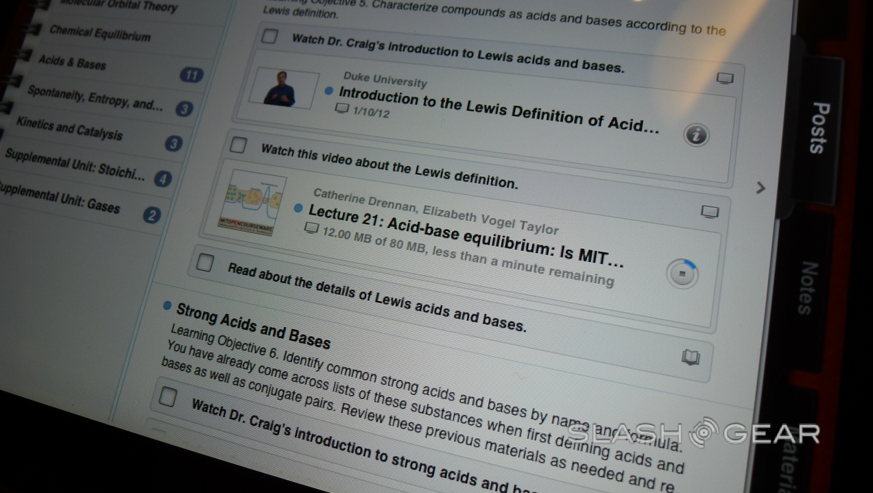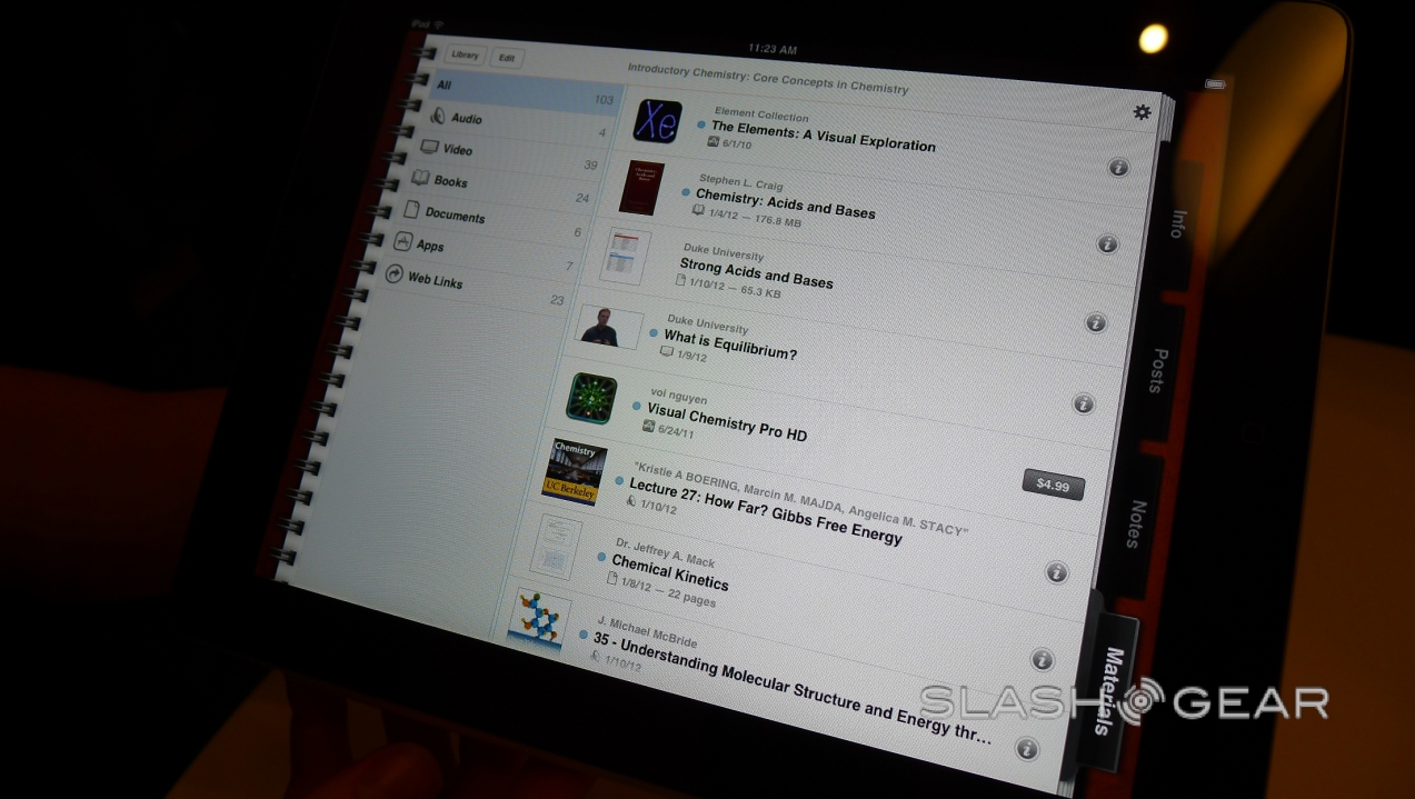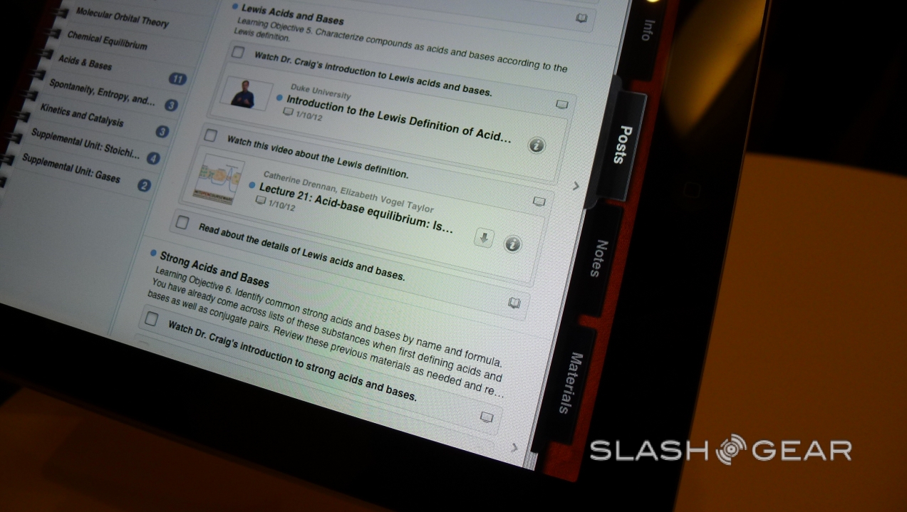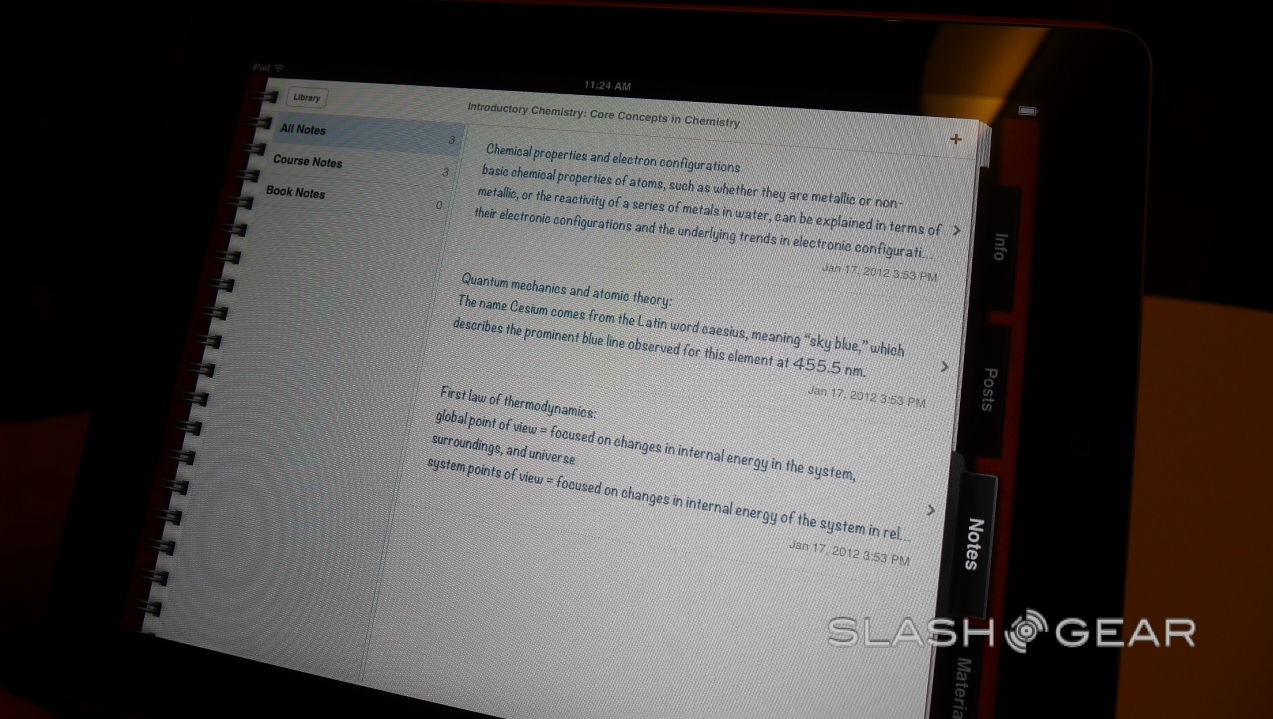 The layout feels much like a paper planner, with individual courses represented iBooks-style and then opening up to a virtual spiral-bound book. We've seen textbooks before, though – from Apple today, in fact – but this goes several steps further, integrating with an educational to-do list for an e-course.