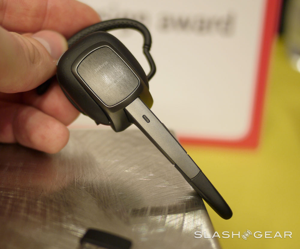 This headset will be coming out next month from Jabra to add to their excellent lineup of Bluetooth and USB speakers out in the states already. What you've got here is a Bluetooth-connected earpiece, both a speaker for your ear and a microphone, that is, complete with some next-level noise cancellation. The noise cancellation we're told is able to work for both you and the person you're speaking with on the other end of the phone – if you're using this headset to speak with a friend via your Bluetooth-capable phone, that is.