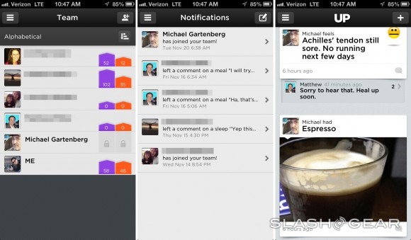 In comparison to the bare-bones original app, the new software is far more comprehensive in the data it collects and how it utilizes that data. There's a new system for logging your diet, and more social features that allow you to compare and share your activity to other members of your "Team." Meanwhile, if you sync data from the old band to the new app, it will apply its new analysis to the old data.