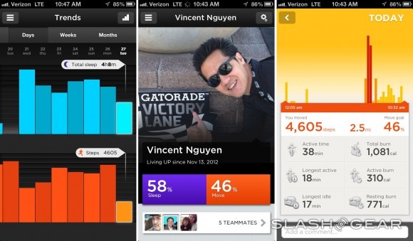The UP wristband itself isn't the only thing to get a significant reworking since the first-gen model: Jawbone has also spruced up its companion app. The new software works with the original UP (though not the original UP on the iPhone 5) or the new model, though you'll need an iOS device, since Jawbone says the Android version is still a work-in-progress.