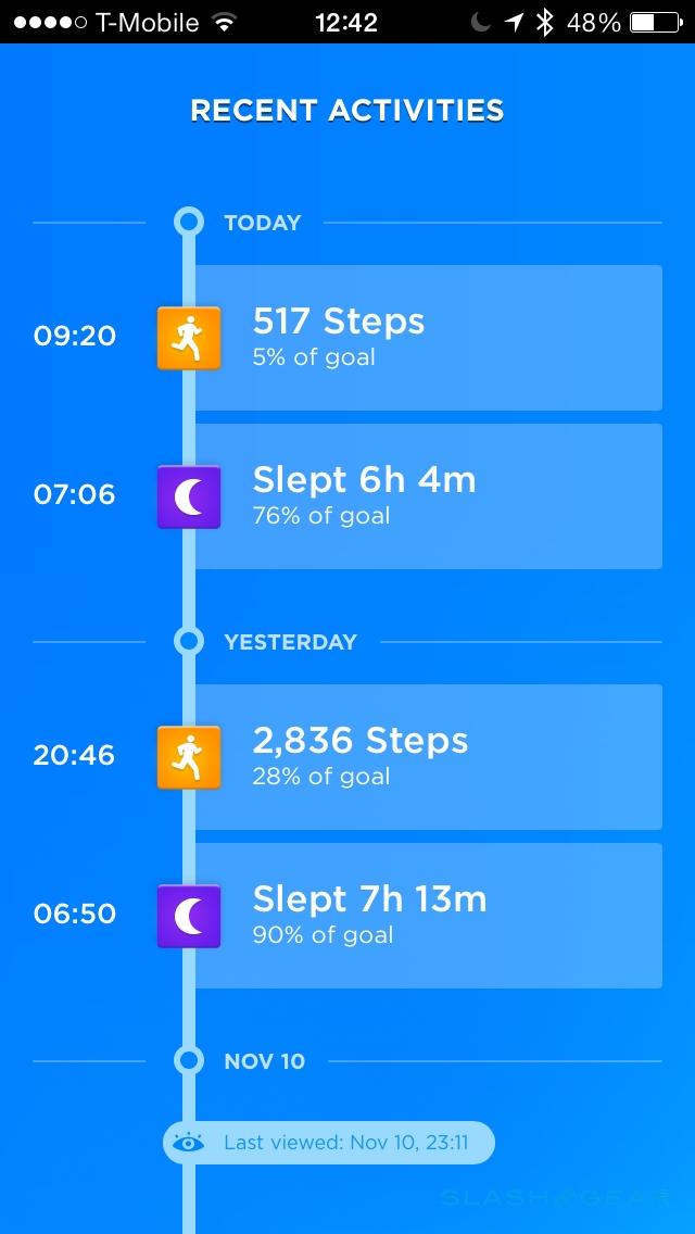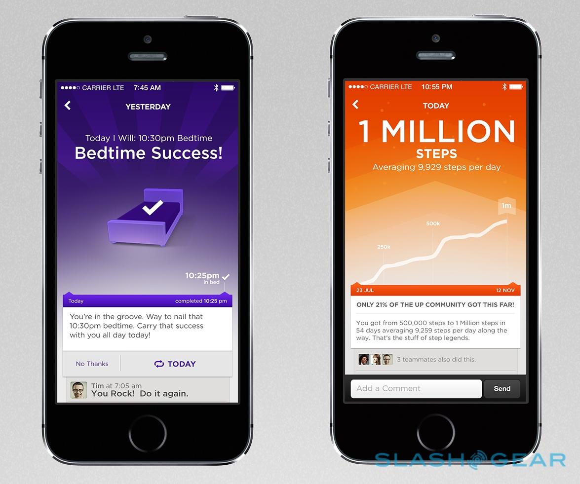 The real-time communication between UP 3.0 and UP24, meanwhile, means the app can give live feedback, too. For example, if you're getting close to your daily steps goal, it can ping you with a reminder to "nudge" you toward completing that goal; if you've accepted a "Today I Will" challenge, the app will use a push notification to remind you when your bedtime approaches. Alternatively, timely recaps – such as how much sleep you got the previous night, and the overall quality of it – can be surfaced too.
