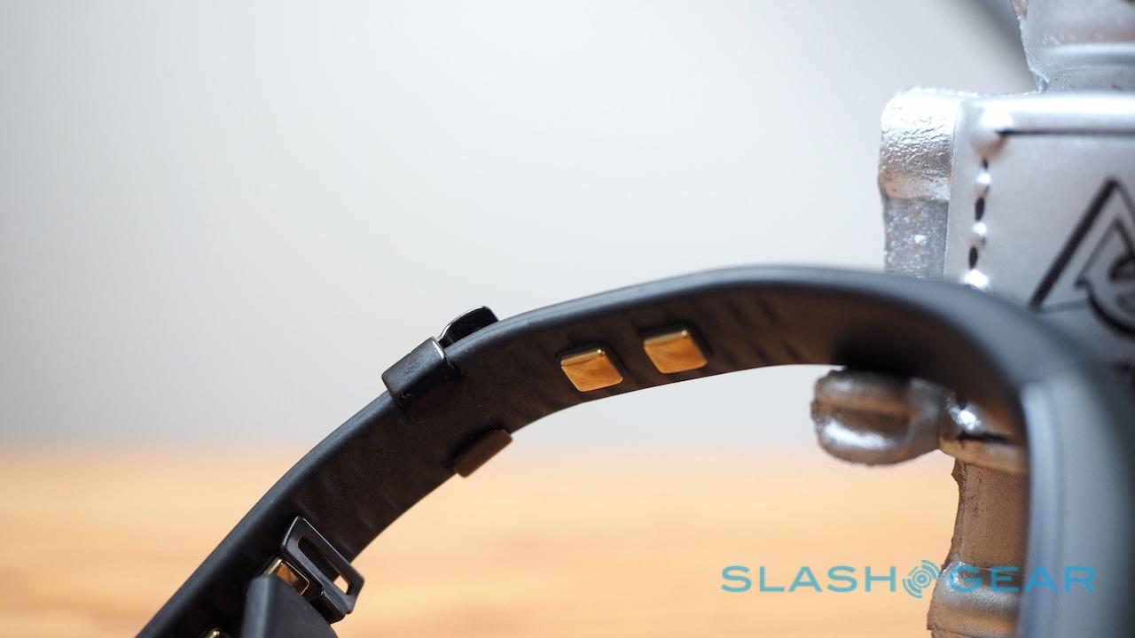 What most differentiates UP3 from the rest of Jawbone's range is the row of five gold bioimpedance sensors running around the inside of the band. They're not just an alternative to the optical heart rate trackers we've seen on rival devices like Microsoft's Band and various smartwatches; according to Jawbone, the clever thing about UP3 is that its sensors can be reprogrammed over time to measure different things.