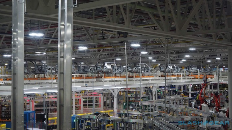Car factories run much slower than I suspect most people imagine them. The vision is always one of swirling, twirling robotic arms punctuated with flourishes of sparks, and yes, Mack isn't short on its mechanized helpers. There are hundreds of robots on the production line, assisting with everything from assembling and laser-measuring the SUV's shell, to painting it, to helping load in the wiring harnesses and other components.