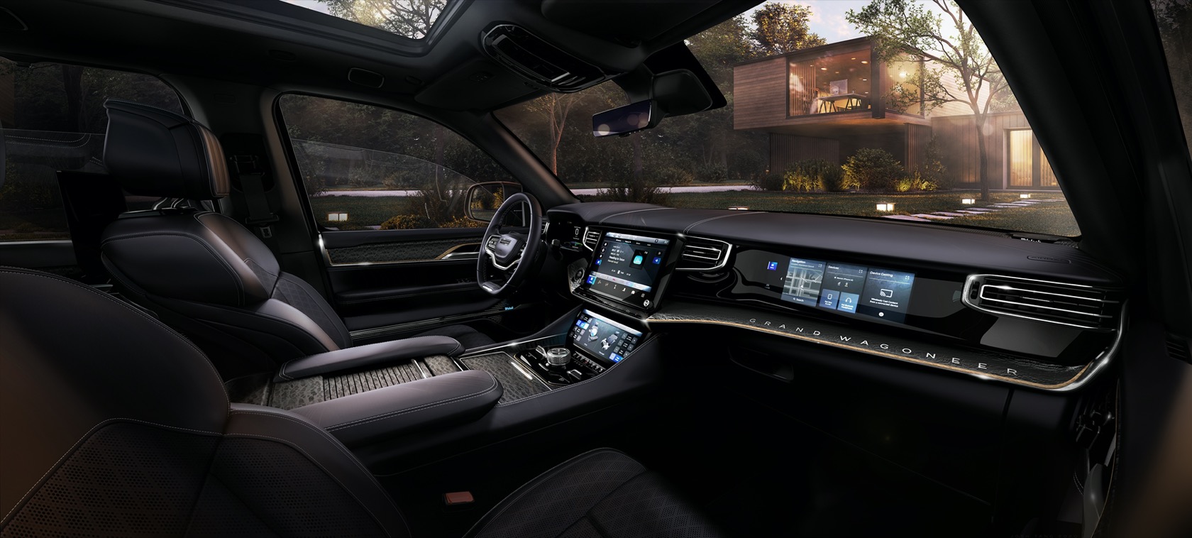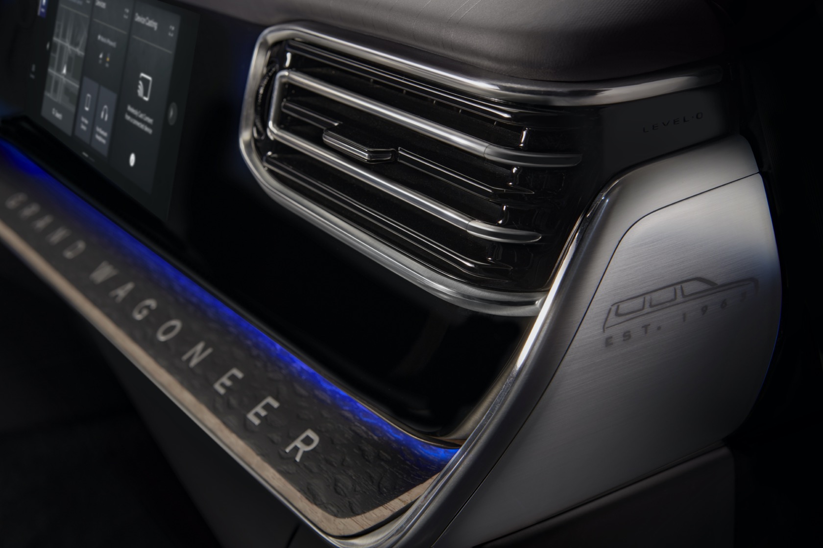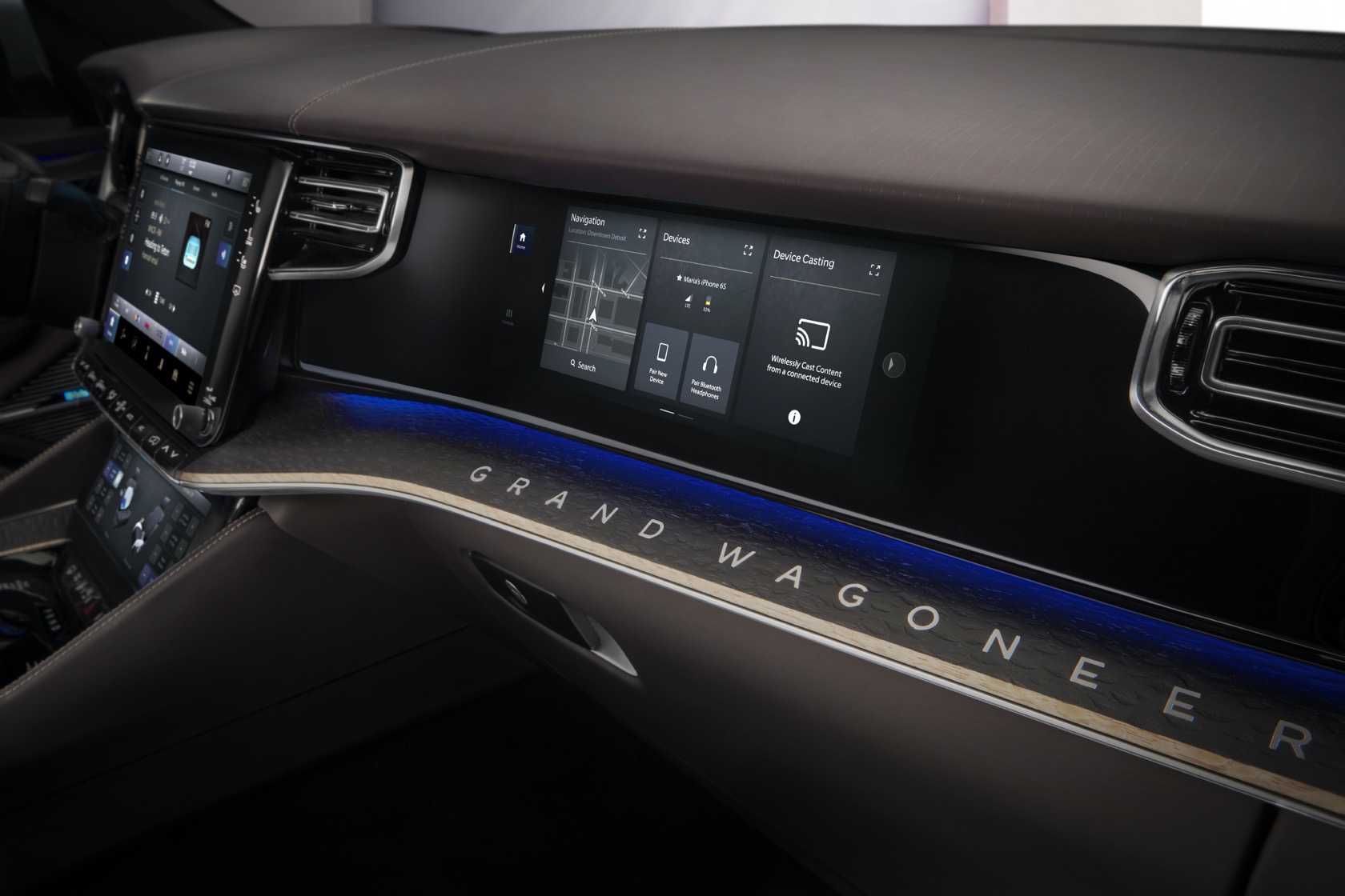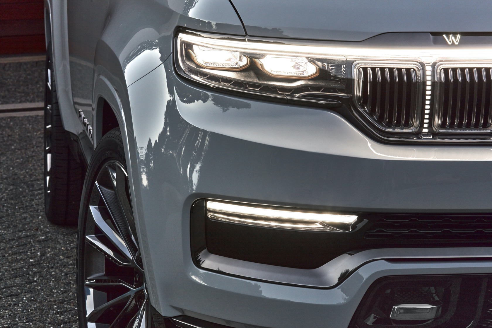 As such, the Grand Wagoneer concept doesn't stint on high-end tech and styling. Outside, everything is oversized, from the 24-inch wheels to the LED-illuminated grille. Jeep has used real wood, like teak, inside and out, along with sustainable fabrics and raw aluminum. The end result is an SUV with real presence, though only time will tell how much of that will translate to the production version.