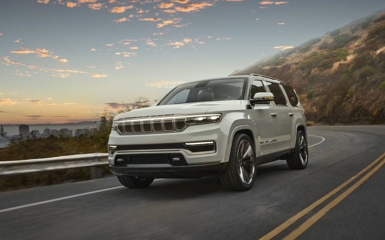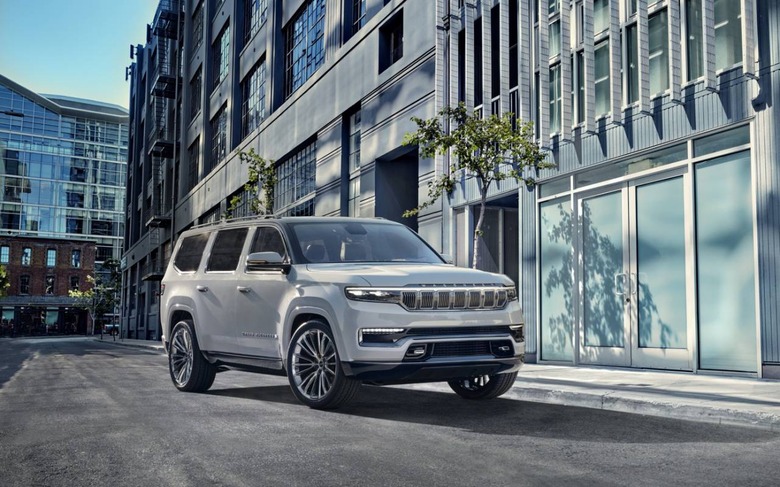 Dubbed "a modern expression of the original ultimate premium SUV," it's all-wheel drive of course, with an electrified powertrain that pairs a gas engine with a plug-in hybrid system. Jeep isn't talking much about how that will work yet – we'll probably have to wait for the production Grand Wagoneer to find out the details – but is playing up the idea of instant torque and the potential for near-silent off-roading.