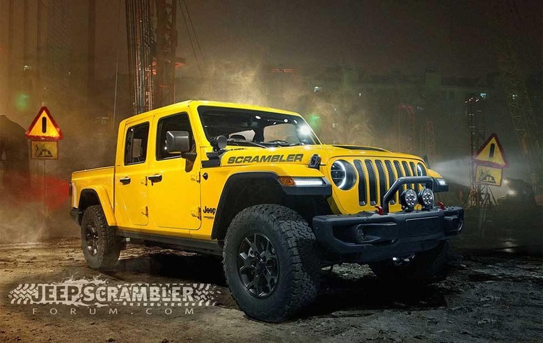 What we don't know is exactly what the truck will look like. The gang over at Jeep Scrambler Forum have whipped up some renderings, and we hope the truck looks like what they have cooked up. The original poster of the renderings says that they are based on legit data.