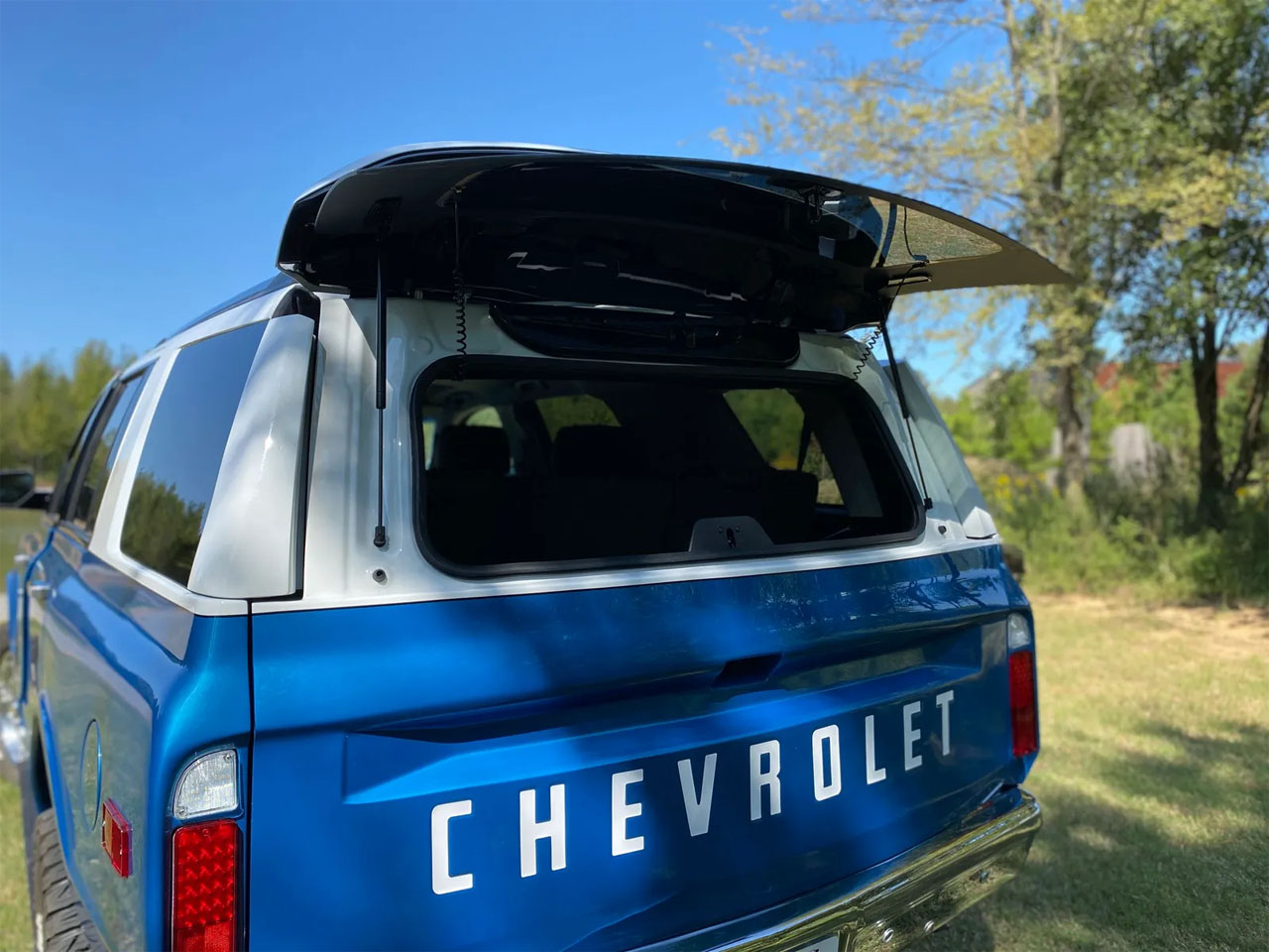 After the conversion, the Tahoe looks very much like a classic first-generation K5 Blazer. The classic looks are combined with all of the reliability and safety equipment of the modern Tahoe SUV. The company notes that all modern safety features are maintained in the conversion, including all airbags, parking sensors, backup camera, lane-keeping assist, a power liftgate, and remote start.
