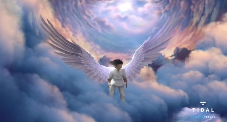 The short clip that West revealed doesn't do much to portray an actual "game;" instead it's rudimentary CG footage depicting his mother flying through clouds, riding a Pegasus, and then growing angel-like wings of her own and traveling towards a bright light in the sky.