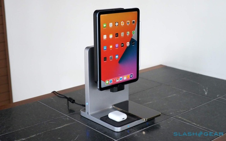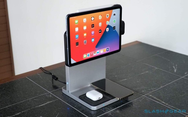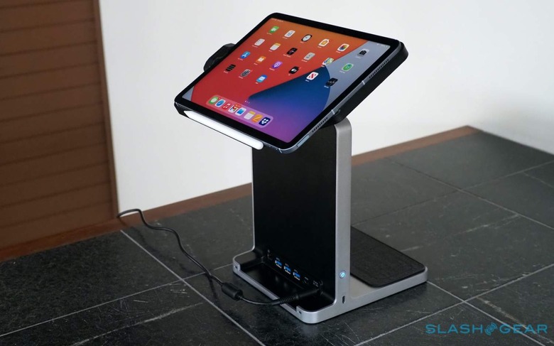 Kensington offers two versions of the StudioDock, depending on which iPad you have. One works with the iPad Pro 11-inch (2018 on) and latest iPad Air (2020) and is priced at $379.99, while the other is scaled for the larger iPad Pro 12.9-inch (2018 on) and is $399.99. Either way you get a sturdy metal stand in an Apple-esque brushed silver finish, with a plastic docking cradle that twists 90-degrees to cater for both screen orientations.