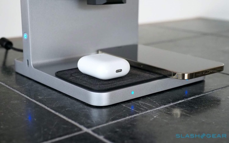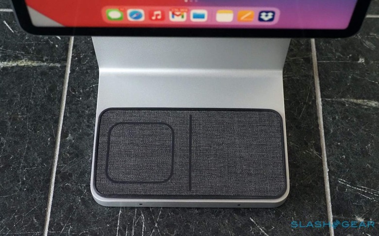 The "foot" of the StudioDock includes two Qi wireless charging pads, and indeed flexible charging almost seems to have been as much a focus for Kensington as iPad connectivity. The pads will charge your iPhone at up to 7.5W and your AirPods at up to 5W (or, of course, whatever Android device you might have; both pads top out at 7.5W). If you need more juice, the USB-C port on the side delivers 5V/3A and 9V/2A; each of the USB-A ports delivers 5V/0.9A. As for the iPad itself, that charges at 37.5W.