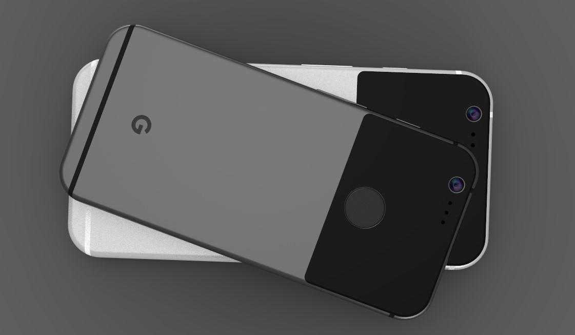 Word from China today has a bit to do with the back-facing panels on the Pixel phone and the Pixel XL. In the renderings provided by Simon Paturel (made back in August) above and below, large glass (or shiny plastic) panels can be seen above and to the sides of a single fingerprint scanner circle.