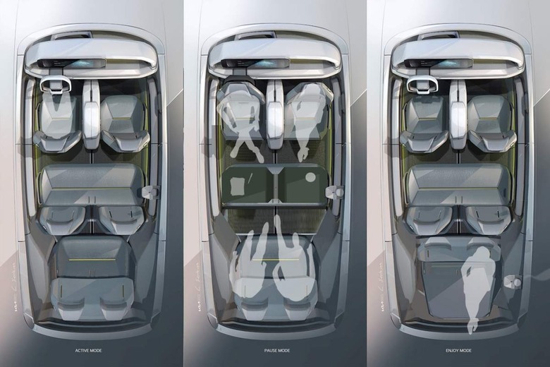 The Kia EV9 Concept features a unique pop-up steering wheel, a 27-inch ultra-wide infotainment display screen, and three interior modes for the seating position. The internal arrangement is in 'Active' mode when the vehicle is in motion, where all the seats face forward. But in 'Pause' mode, the front seats swivel around, and the second-row seats become a table. Lastly, there's an 'Enjoy' mode where the third-row seats face back, and the tailgate opens passengers to enjoy the (back) view.