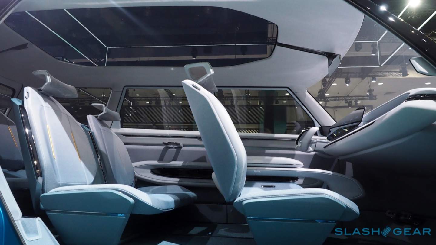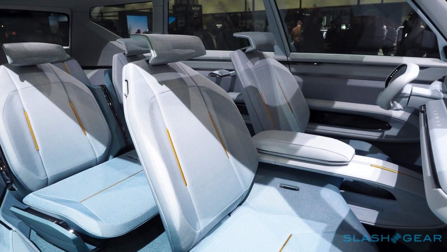 Kia used that opportunity to experiment with some neat features that are refreshing in their practicality. The touch-sensitive HVAC controls that glow through the fabric-wrapped dashboard not only look great, but they don't feel too far from something Kia could actually use in a production vehicle. The same goes for the integrated storage, and the way the seats are mounted which emphasize the benefits of an EV's flat floor.