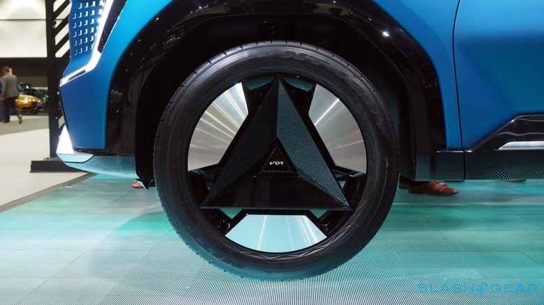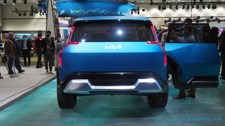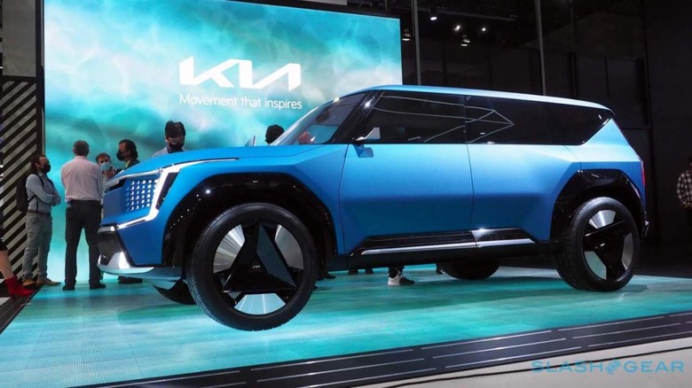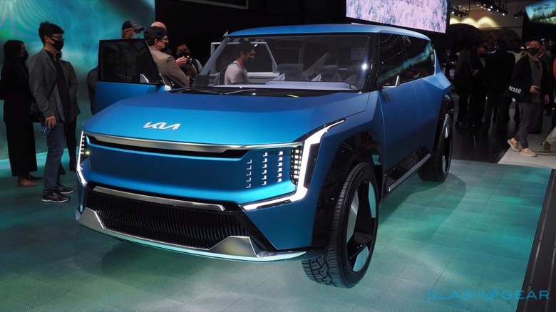 Kia, like Hyundai, is blunt that we shouldn't read too much into production intent from what's clearly billed as a concept. Nonetheless, the promises it makes for the E-GMP architecture which underpins both automakers' concept SUVs isn't just auto show hot air. Dual electric motors, a 77.4 kWh battery, and talk of around 300 miles of range sound eminently achievable too, as does 350 kW DC fast charging support.