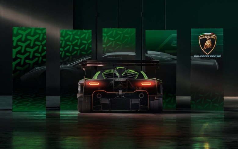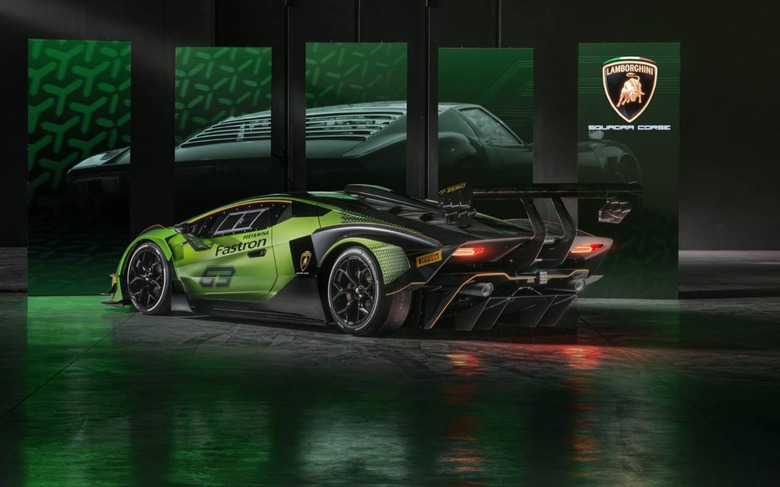 The bodywork is formed by three key elements, designed by the Lamborghini Centro Stile team to support quick replacement during pit stops. It'll be offered with Verde Silvans, Grigio Linx, Nero Aldebaran Gloss, and Arancio California launch livery. Lamborghini's favored hexagons and Y-motifs feature throughout, but there's been a focus on making them structural as well as design elements: the new carbon fiber monocoque chassis, which does away with the need for a separate roll cage, is a good example of that.