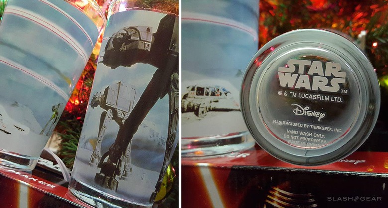 Next, what you've got here is a Battle of Hoth pint glass set, the set of which reveal blaster bolts and a snowspeeder when the glasses get cold. This is another ThinkGeek creation and exclusive.