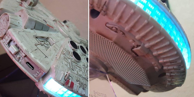The Millennium Falcon you see here can be found at ThinkGeek as well, but is made by iHome. This device goes by the name "Star Wars Episode VII Millennium Falcon Bluetooth Speaker."