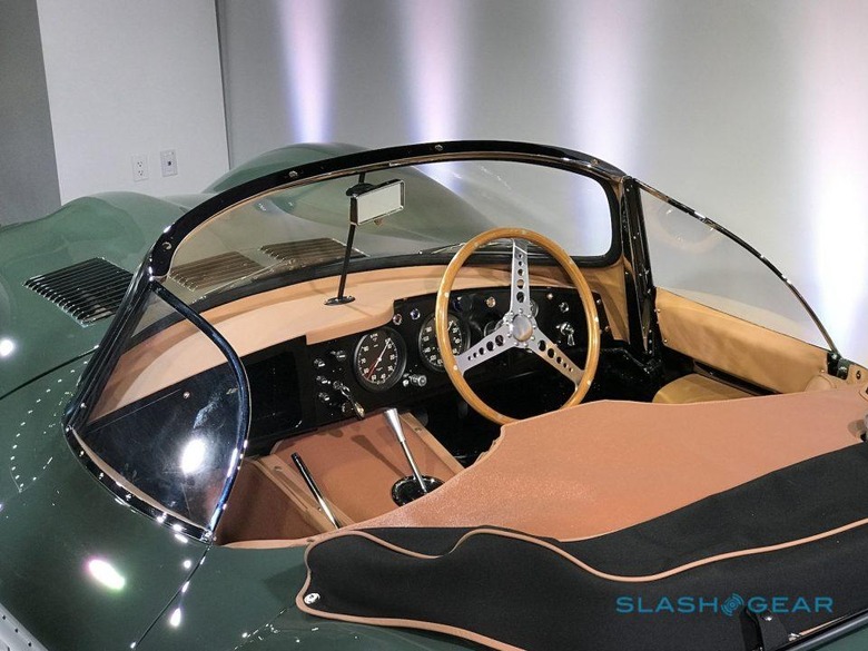 In the cabin, the Smiths gages have been recreated, along with the brass knobs of the controls. The wooden steering wheel matches the original XKSS, as does the grain of the seat leather. The result is deceptively simple: it's hard, looking at the car, to wrap your head around the fact that this is a 21st century vehicle.