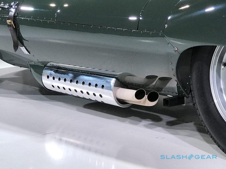 In all, it took eighteen months for Jaguar Classic to figure out how to resurrect old production technologies for the new car. That's included completely recreating a styling buck on which the magnesium alloy body is made by hand, taking into account the idiosyncrasies present in the surviving cars. The limitations of hand production meant that the oval front grille is not symmetrical, for instance.
