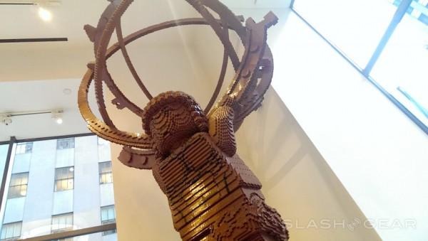 Above you'll see the bronze statue "Atlas" by sculptor Lee Lawrie with the help of Rene Paul Chambellan, standing at Rockefeller Center near the LEGO store. Below you'll see the LEGO version of Atlas, constructed by a LEGO Master Builder.
