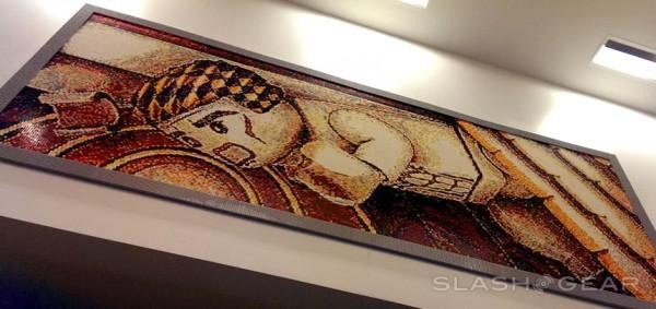 Inside the 30 Rock LEGO Store you'll find several murals made of single LEGO blocks, meticulously placed. Below is one of several murals on the walls above shelf after shelf of LEGO boxes.
