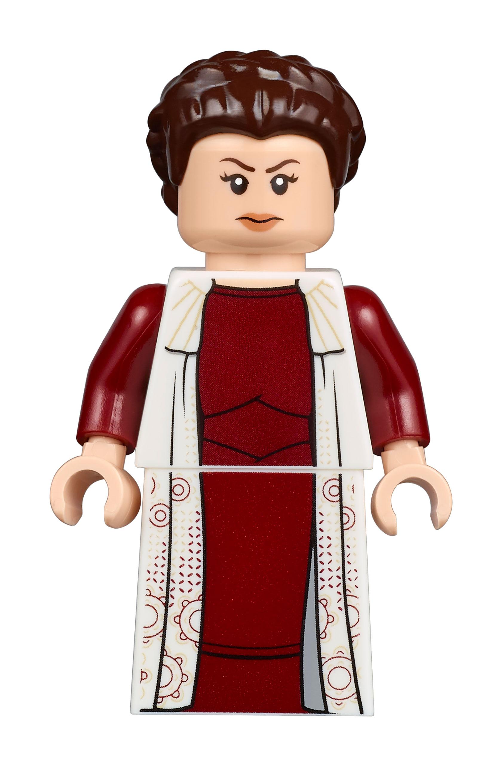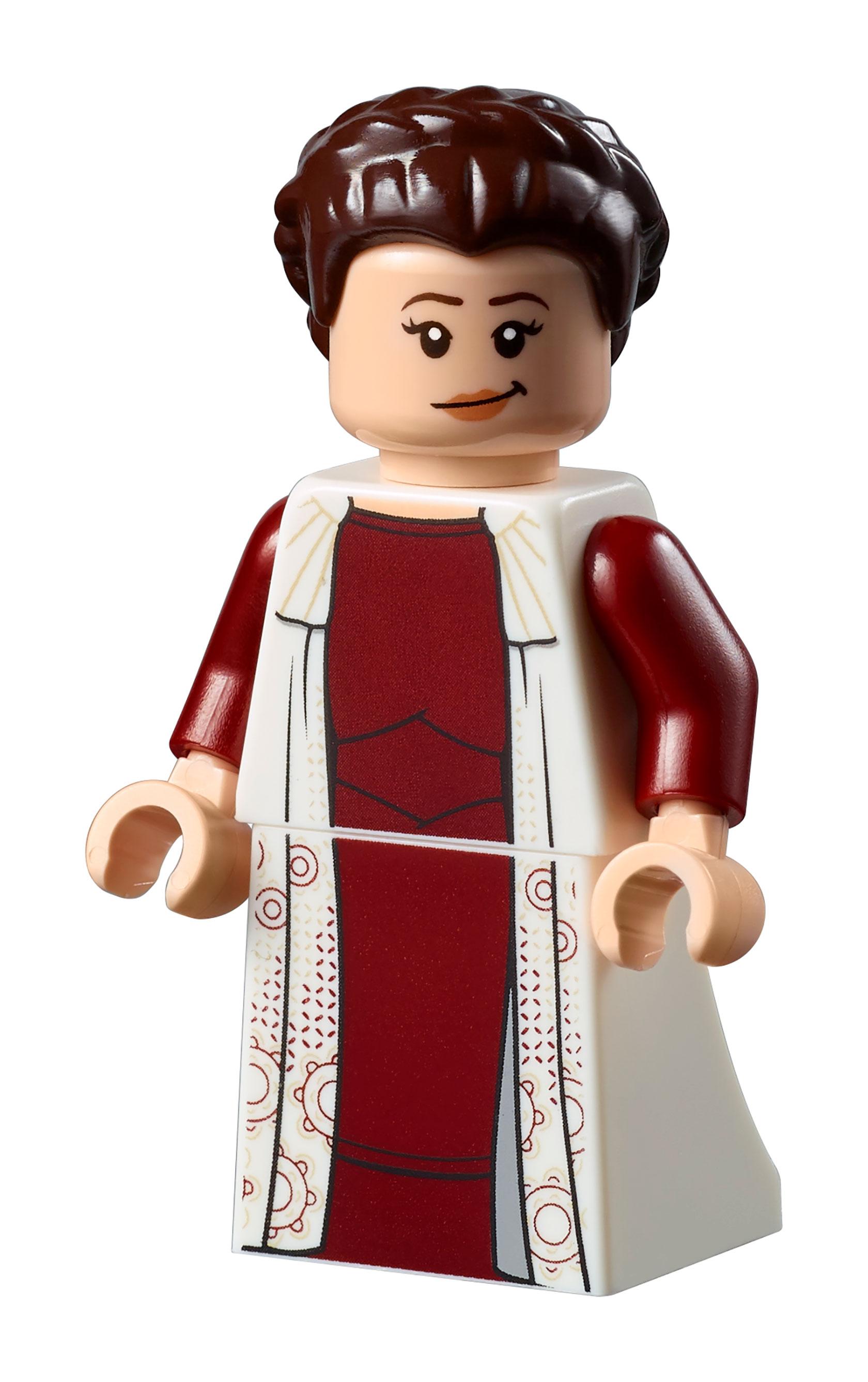 Per the official description of this set, "New minifigure details include Leia's red dress, Han's Corellian blood stripe, Luke's dark-tan Dagobah outfit, the Ugnaught's head decoration and the cloud car pilots."