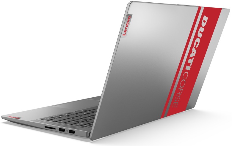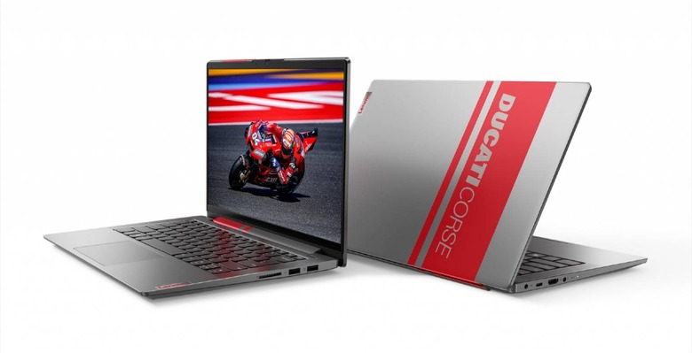 Lenovo has partnered with motorcycle company Ducati to launch the limited edition Lenovo Ducati 5, a laptop featuring iconic racing stripes paired with the PC maker's distinctive design flavor. The laptop is joined by a special notebook sleeve that includes the same special stitching pattern used on Ducati motorcycle seats, among other things.