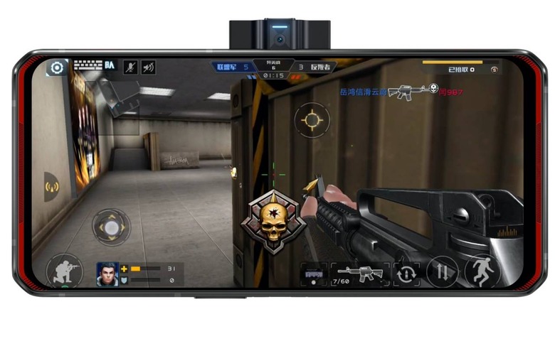 On the edge is arguably the most distinctive feature, a slide-out selfie camera. Rather than popping out of the top of the phone, as we've seen on other handsets, the Legion Phone Duel's 20-megapixel actually emerges from the side. It can shoot up to 4K 30fps video, and will automatically drop back should you drop the phone. The back gets a 64-megapixel camera and RGB lighting effects.