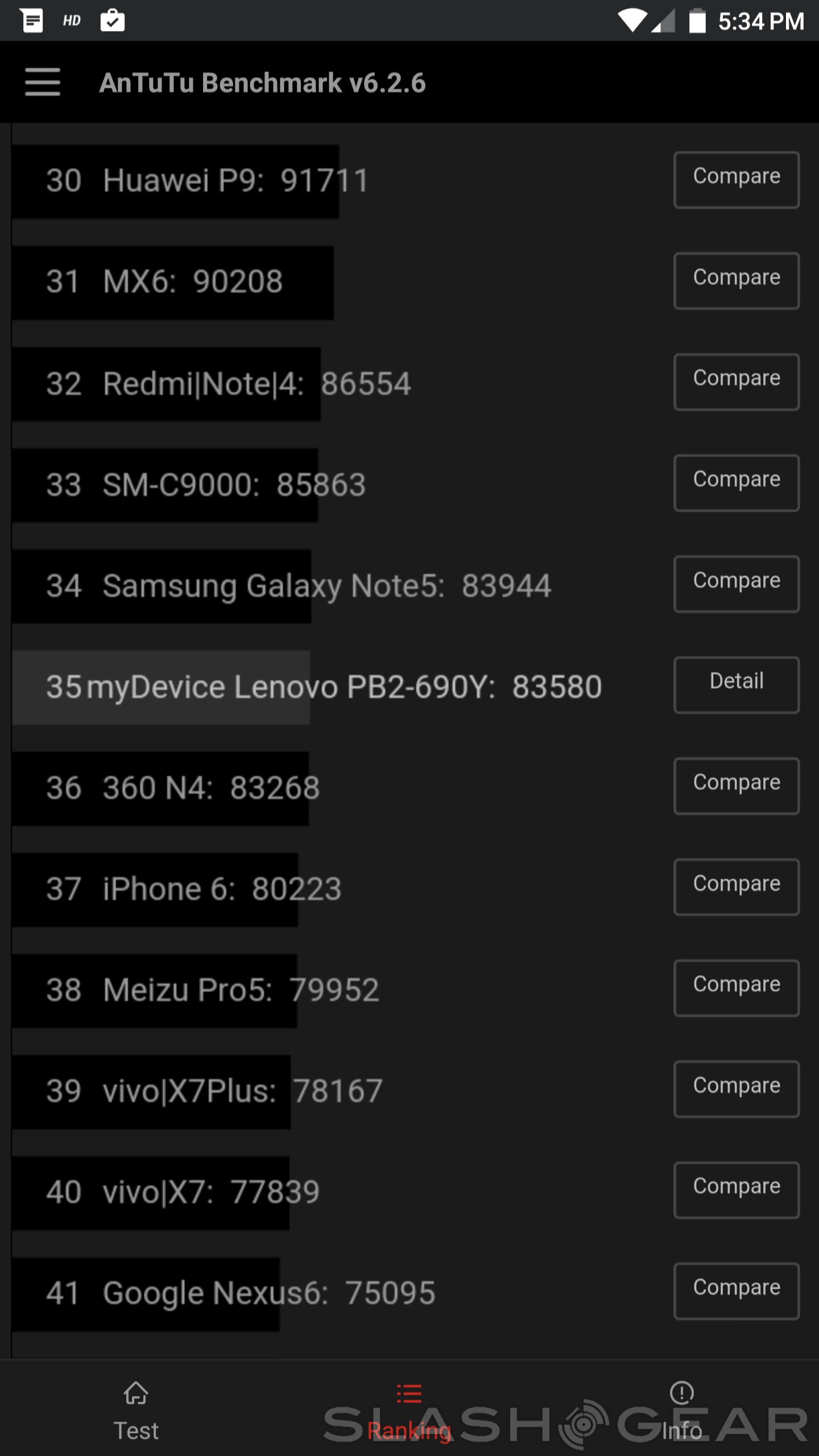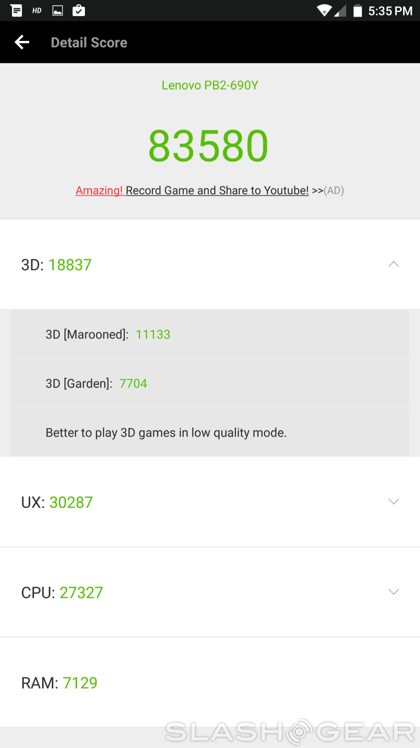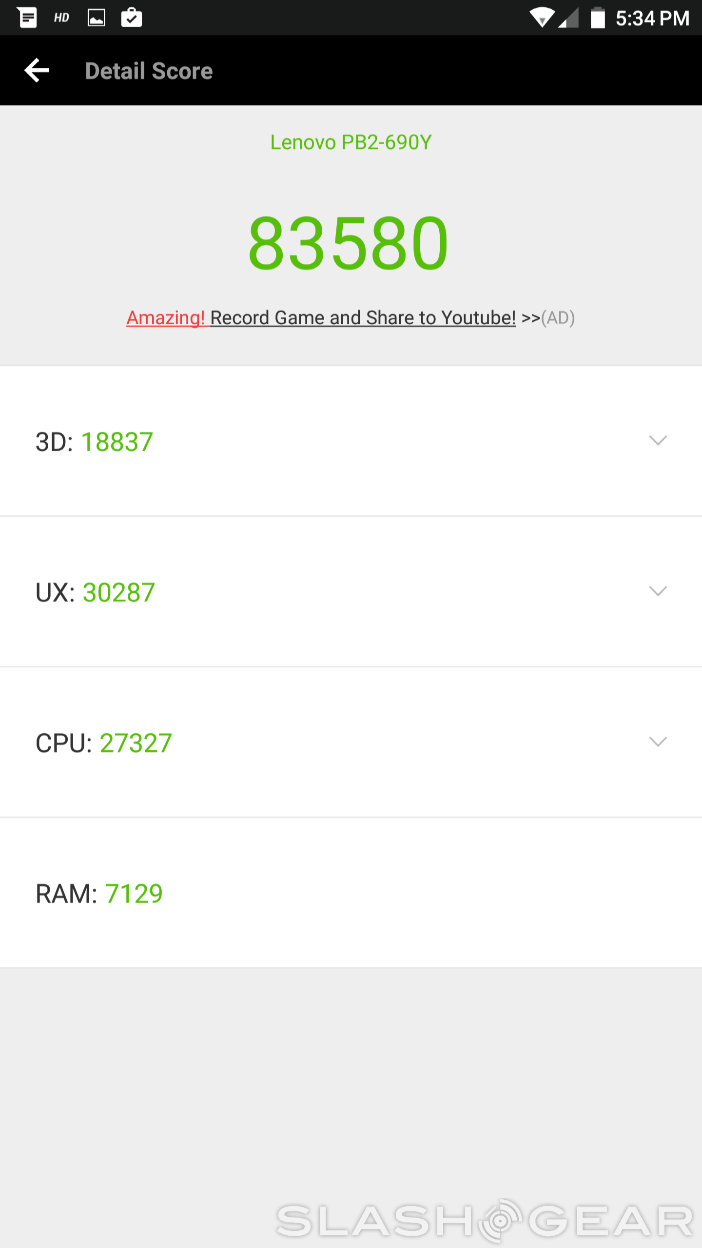 However, internal hardware is where we start running into issues. Running this through Antutu shows us just how middling the hardware is, giving us a score of 83,580. That places the Phab 2 Pro just below the Galaxy Note 5 in terms of overall power, and just above the iPhone 6.