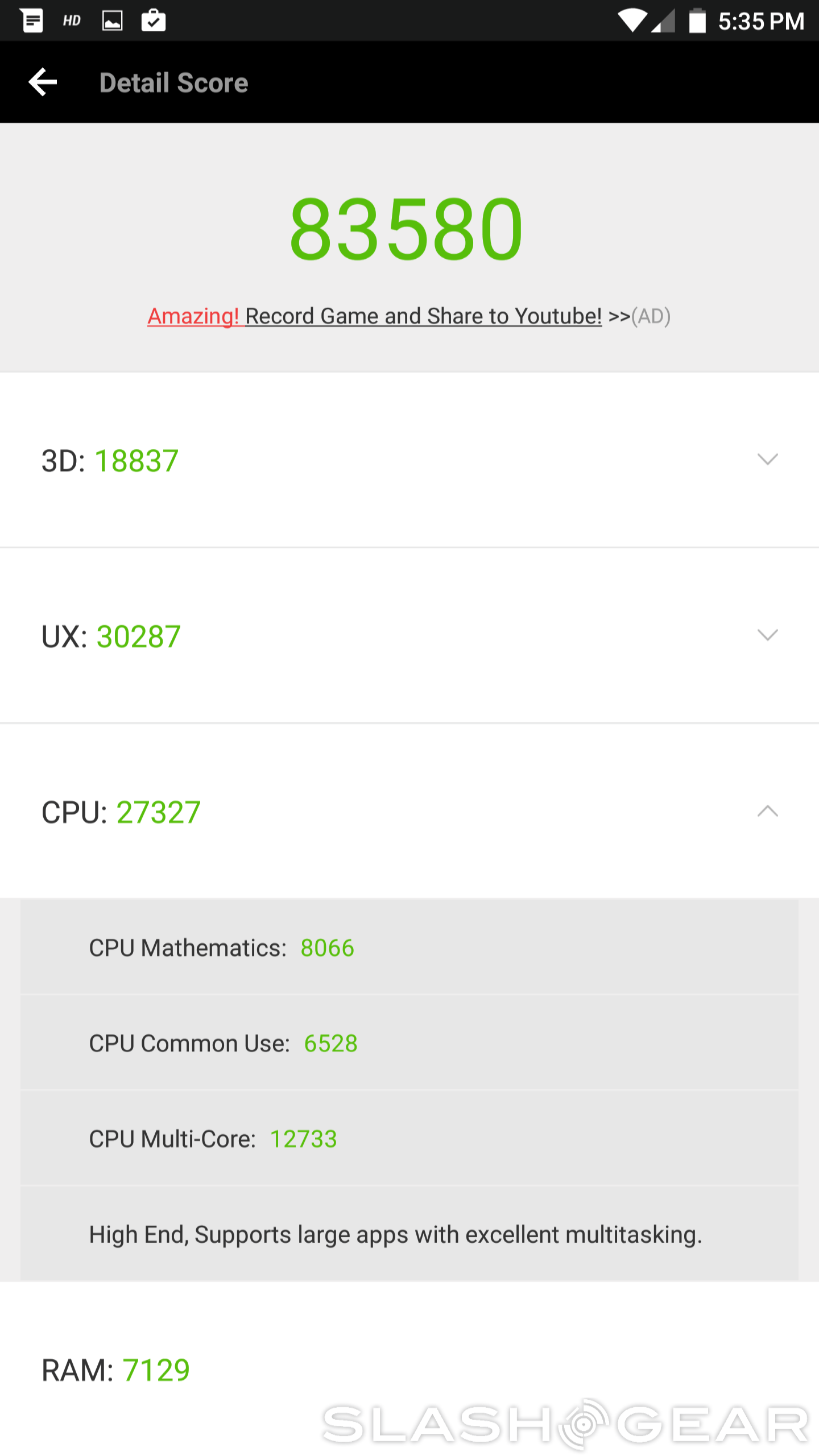 We get a better idea about the shortcomings of the hardware when we compare individual test results to phones that are close to the Phab 2 Pro in Antutu's ratings. We see the Phab 2 Pro taking home higher marks when it comes to user experience, along with better scores in multi-core CPU tests. That's an encouraging result for augmented reality.